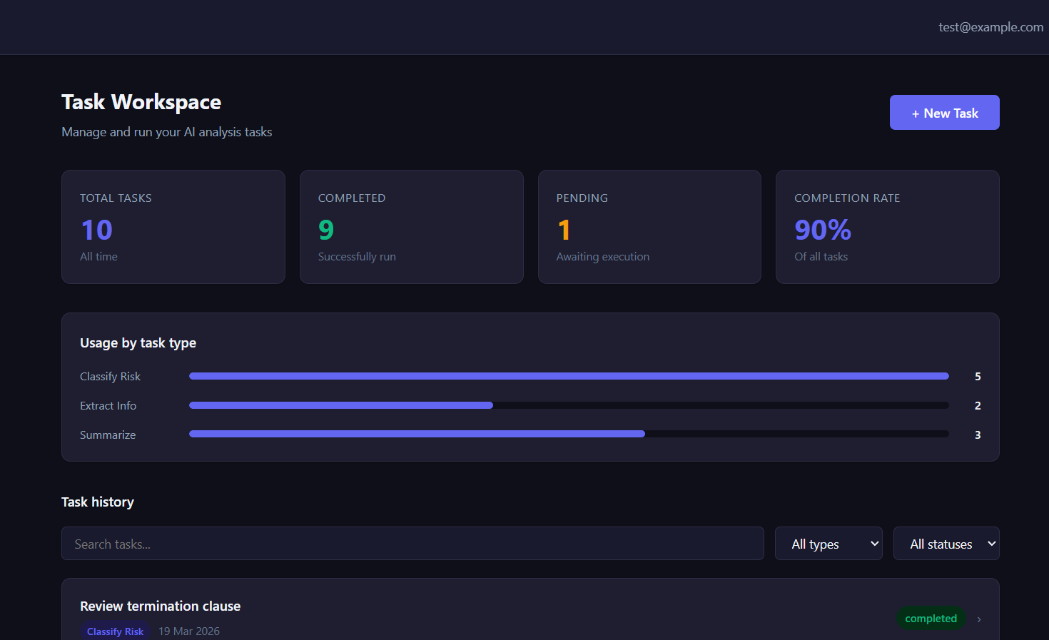 A full-stack web application for submitting text-based tasks, running AI-powered analysis, and viewing structured results.