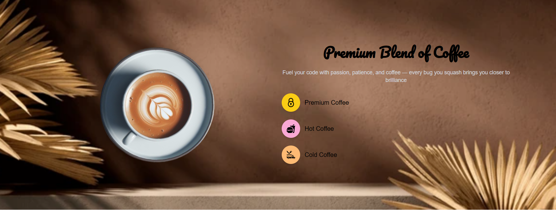 Pure front-end static online Kaffee Markt built using React.js and Tailwind CSS with AOS animation effects.